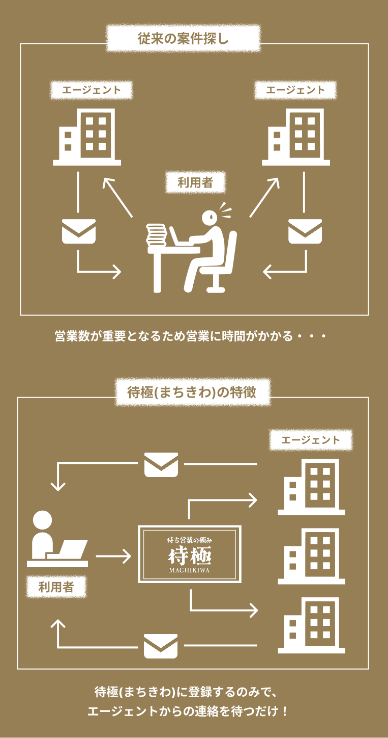 それこそが営業の最終到達点と考え、時間も労力も最小限に、質の高い案件との出会いを実現できる業界初の新しい仕組みをご提供します。